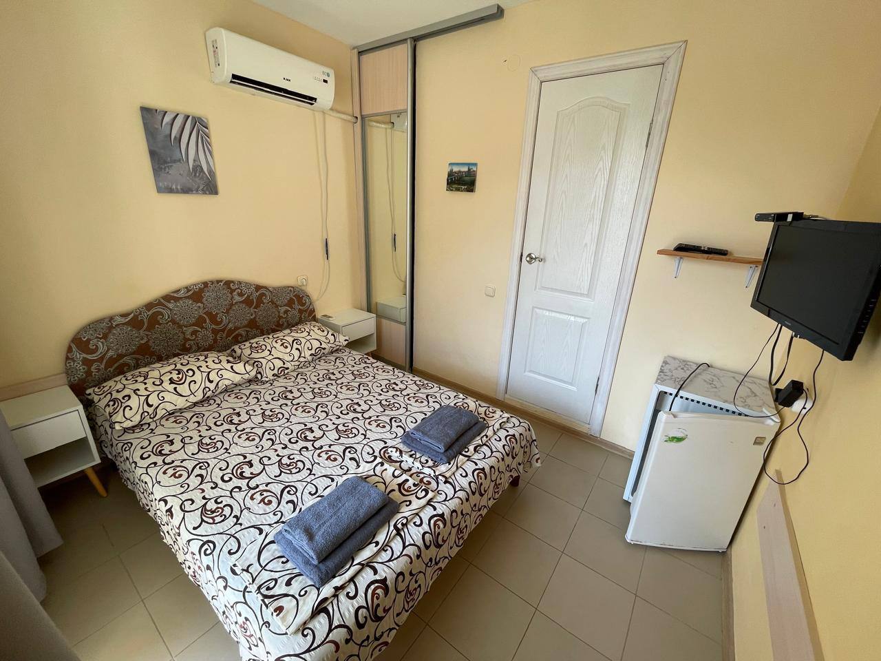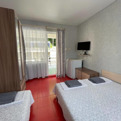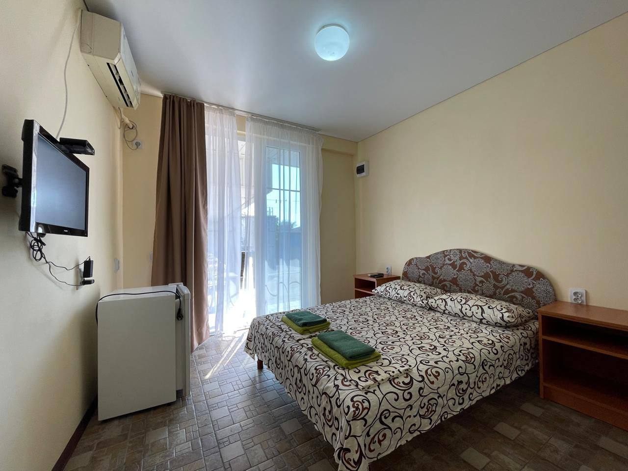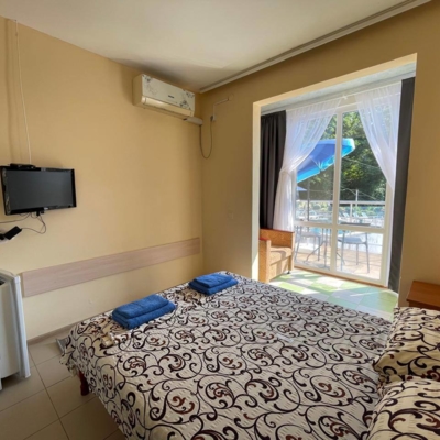 - Современные оборудованные номера: кондиционер, холодильник, телевизор, душ, c/у, банные полотенца;